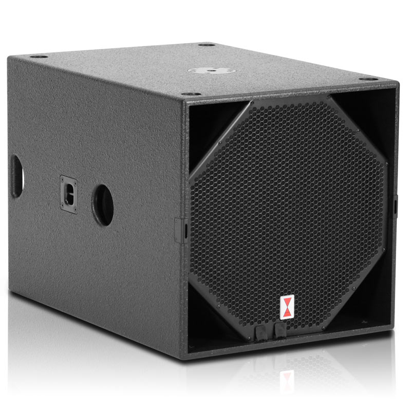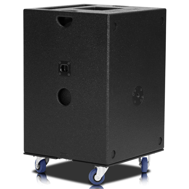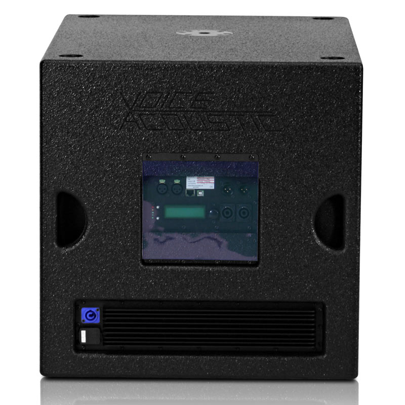 - 18″ Neodym-Tieftöner mit Langhub und 4″ Schwingspule mit integriertem DSP-Verstärker